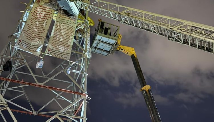ويأتي هذا الإجراء لتمكين المعتصم من تلقي الإسعافات والرعاية الصحية الضرورية، خصوصاً بعد قضائه ستة أيام في ظروف صعبة فوق العمود.