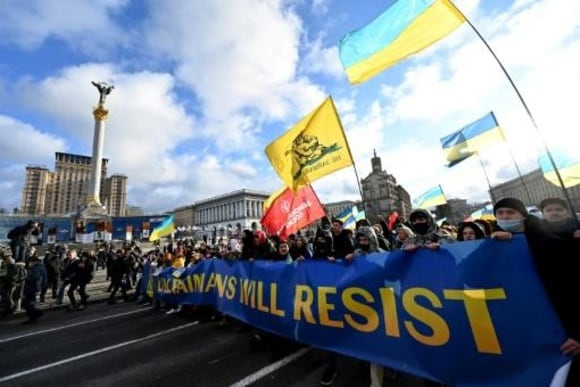 شارك آلاف الأوكرانيين حاملين علم بلادهم في مسيرة بوسط كييف السبت من أجل إظهار وحدتهم فيما تكثّف واشنطن تحذيراتها من غزو روسي وشيك.