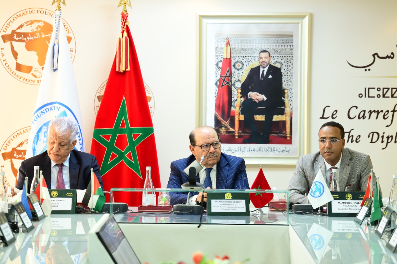 في إطار لقاءات المؤسسة الدبلوماسية استقبل المنتدى الدبلوماسي يوم الأربعاء 5 أكتوبر 2022 بالرباط الأمين العام لمجلس الجالية المغربية بالخارج عبد الله بوصوف، بحضور عشرات من السفراء الأجانب المعتمدين بالمغرب.