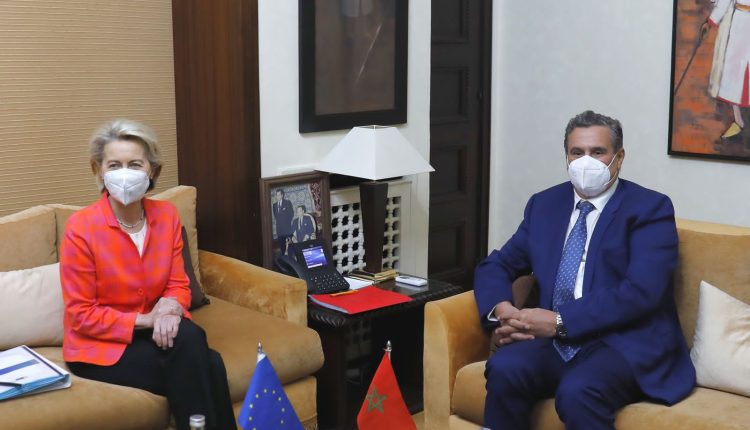 وقال أخنوش خلال لقاء صحفي مشترك مع رئيسة المفوضية الأوروبية، السيدة أورسولا فون دير لاين، عقب المحادثات التي أجرياها، “سنعمل بجدية على تقوية هذه العلاقات التي يوليها صاحب الجلالة الملك محمد السادس أهمية خاصة”، مبرزا أن المغرب يسعى للمضي قدما في شراكته مع الاتحاد الأوروبي عبر إقامة مشاريع كبرى مستقبلا. وتابع أن المملكة والاتحاد الأوروبي، اللذين يجمعهما مستقبل مشترك، يتقاسمان نفس وجهات النظر، مشيرا إلى أن محادثاته مع السيدة فون دير لاين شكلت مناسبة لاستعراض الأوراش المهمة التي تم إطلاقها تحت قيادة صاحب الجلالة الملك محمد السادس والتي تحظى فيها الحماية الاجتماعية بالأولوية.