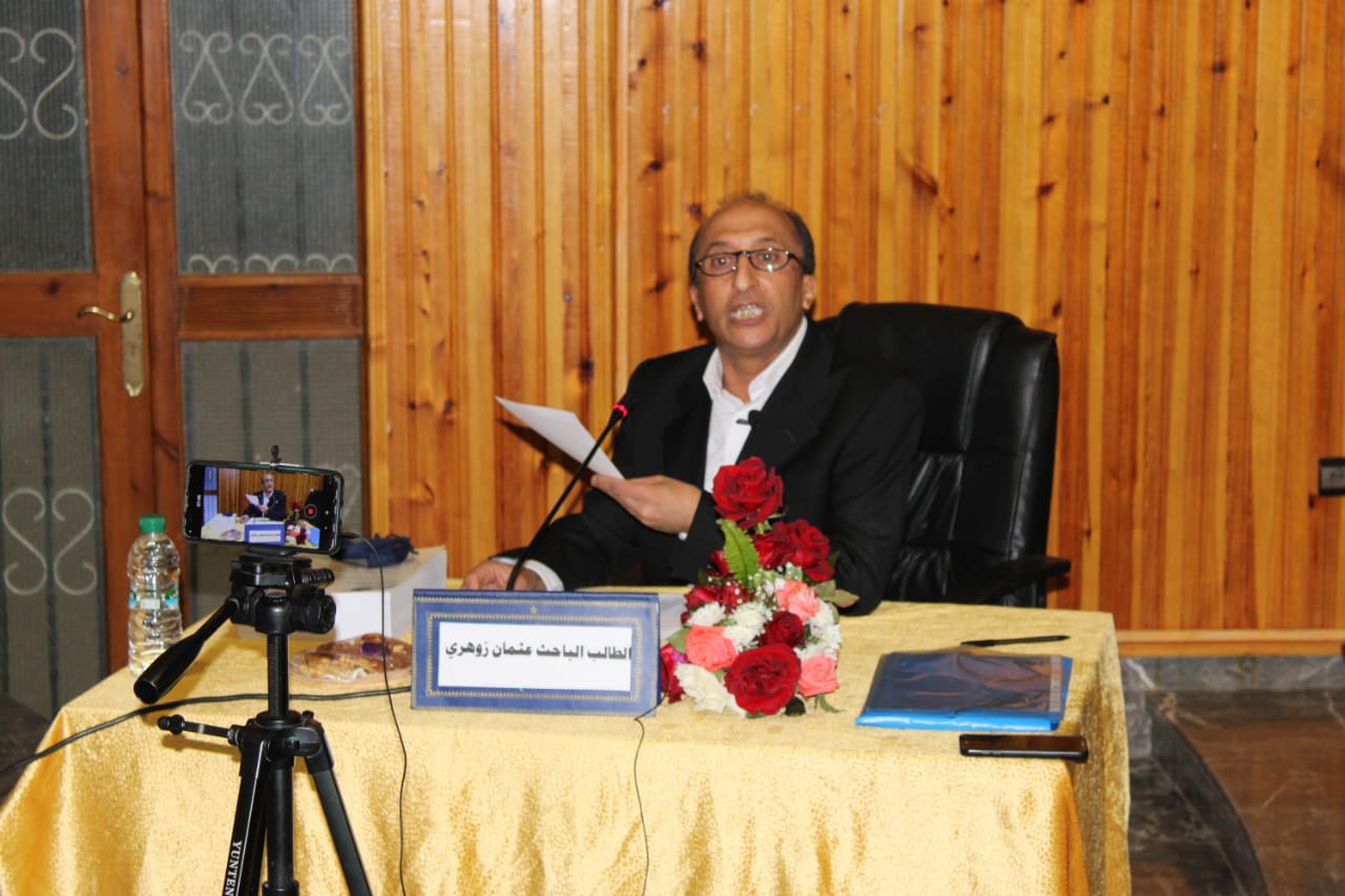 شهدت قاعة المحاضرات برحاب كلية الاداب والعلوم الإنسانية، جامعة السلطان مولاي سليمان يوم السبت 6 فبراير 2021 مناقشة أطروحة لنيل شهادة الدكتوراه في التاريخ الجهوي للباحث عثمان زوهري، في موضوع :