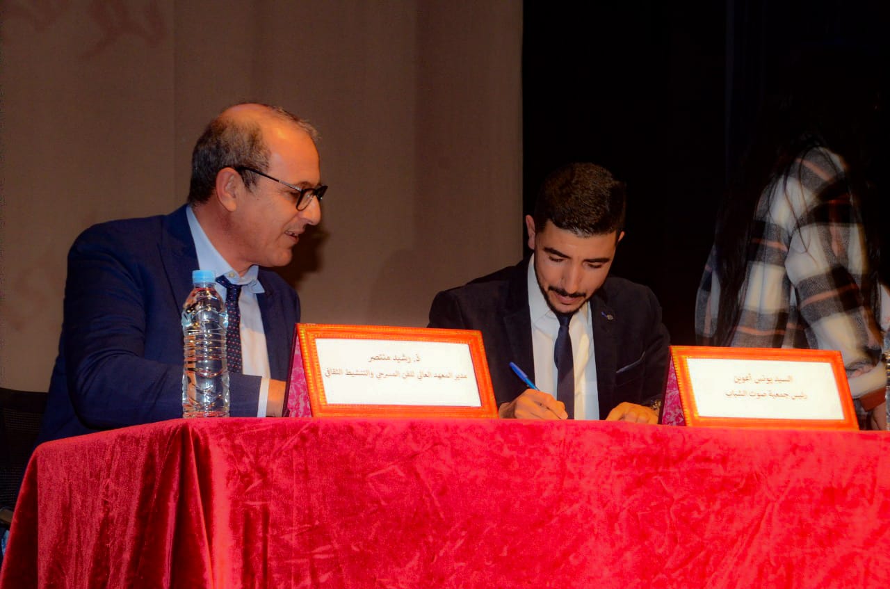 في إطار المبادرات الثقافية التي تقوم بها جمعية صوت الشباب، وُقعت اتفاقية شراكة و تعاون بين  رشيد منصر مدير المعهد العالي للفن المسرحي و التنشيط الثقافي و يونس اعوين رئيس جمعية صوت الشباب ، بتاريخ 03 دجنبر2021، بقاعة با حنيني الرباط بحضور  محمد مهدي بنسعيد وزير الشباب و الثقافة و التواصل.