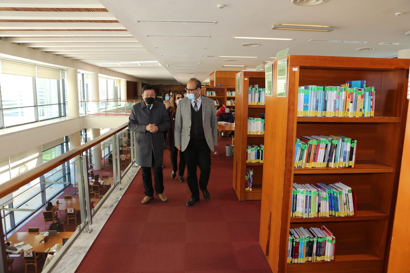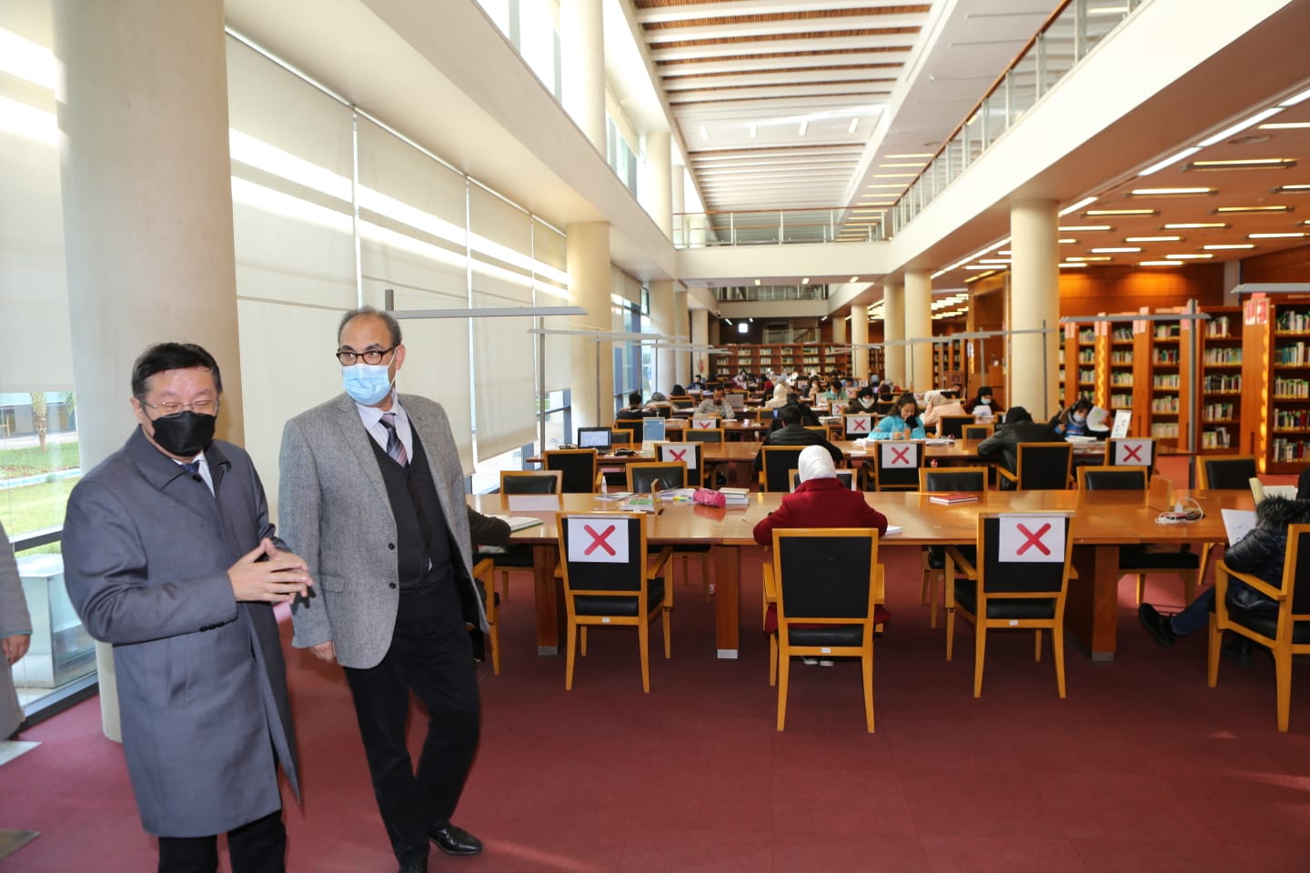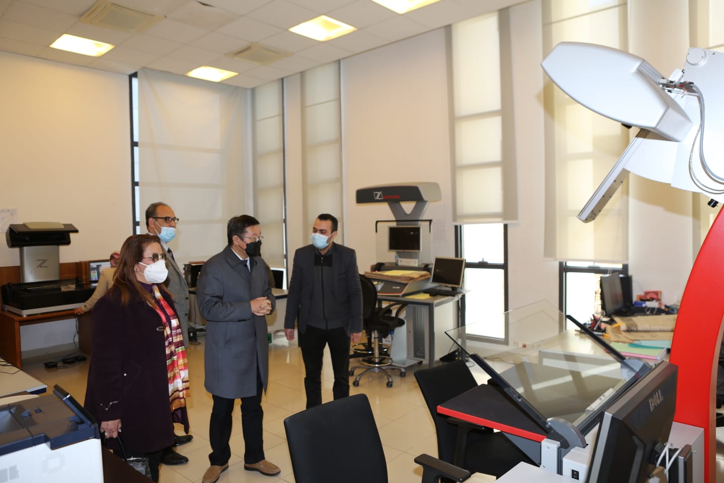وقد اطلع السيد السفير على بعض مرافق المكتبة ( فضاءات القراءة والبحث و مختبرات الترميم والرقمنة …)