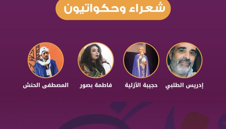 يقترح الشاعر والمسرحي إدريس الطلبي، الى جانب الشاعرة والفنانة المسرحية والسينمائية فاطمة بصور، عرضا بنفس شعري ومسرحي يستمد مرجعياته من النصوص الدرامية التي تمتح من التراث الشعبي المغربي. فيما يحضر الحكواتي، في الجزء الثاني من فقرة “شعراء وحكواتيون”، خصوصا مشاركة خريجين من مدرسة الفنان عبدالرحيم الازلية.. لفنون الحكي ومسرح الحكواتي، إذ تسهر الفنانة حجيبة والحكواتي الشليح على تقديم فن الحلقة بأسلوب جديد.