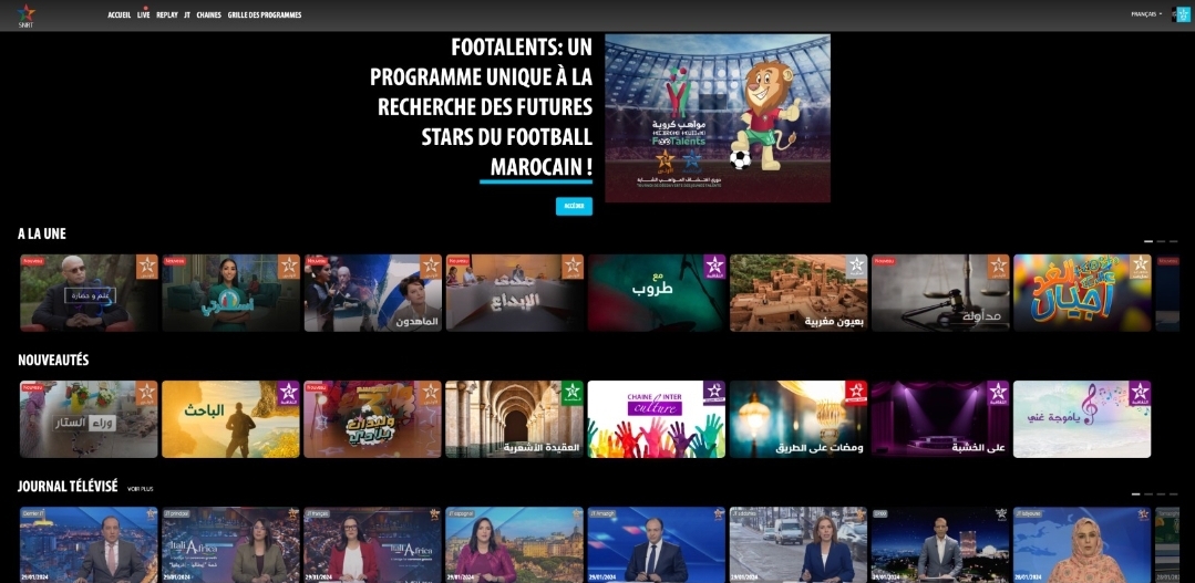 وفي هذا الإطار، تقدم المنصة الجديدة للمستخدمين عددا من الخدمات والمزايا المنسجمة مع مهمة الخدمة الإعلامية العمومية الحديثة التي تقدمها الشركة الوطنية للإذاعة والتلفزة، منها البث المباشر لباقة الخدمات الإذاعية والتلفزية للشركة الوطنية للإذاعة والتلفزة؛ وحرية إعادة المشاهدة في كل مكان وزمان لجميع برامج الشركة الوطنية للإذاعة والتلفزة في مجالات الأخبار والترفيه والثقافة والفنون والمجلات المتنوعة وبرامج النقاش العمومي، وباللغات العربية والأمازيغية والحسانية.