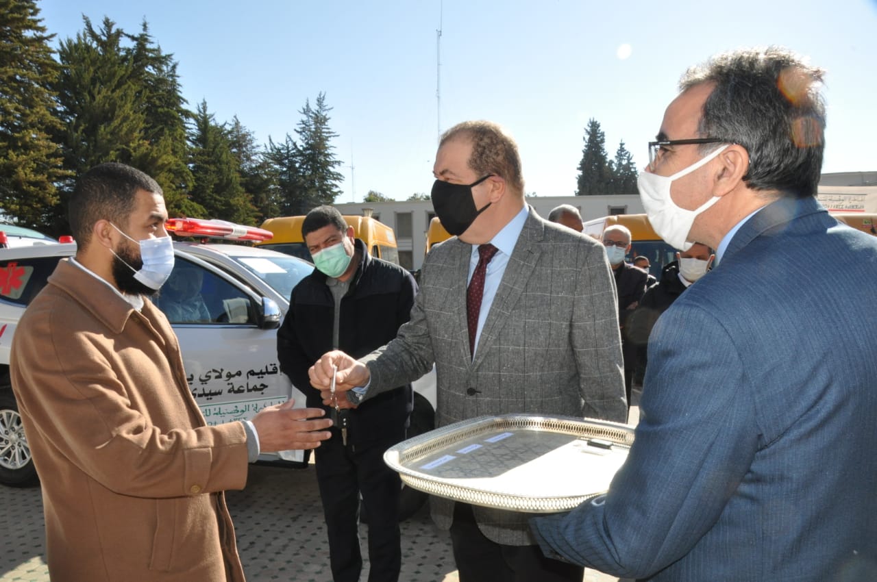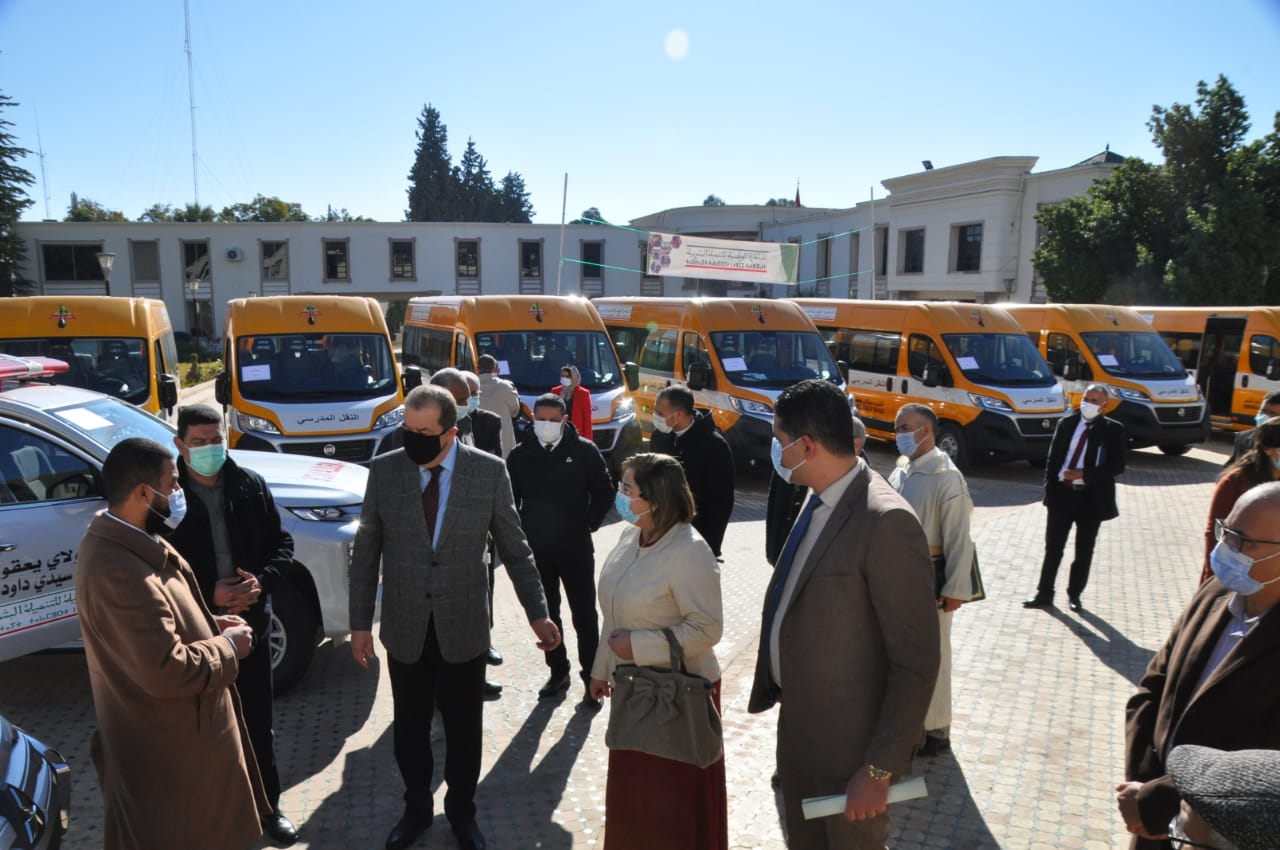 وقد قام العامل والوفد المرافق له بتسليم مفاتيح 3 حافلات للنقل المدرسي لفائدة جماعة عين الشقف، وحافليتن لفائدة جماعة عين بوعلي، فيما تسلمت كل من جماعة سيدي داود و جماعة سبع رواضي حافلة لكل منهما. كما سلمت سيارات الإسعاف لكل من جماعات مولاي يعقوب، سيدي داود وسبت الأوداية.