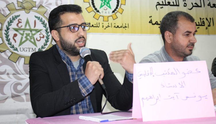 الملفات العالقة؛ لتنتقل الكلمة بعد ذلك إلى السيد يونس ايت ابراهيمي الذي تمحورت مداخلته حول دور العمل النقابي الجاد للرفع من مكانة نساء ورجال التعليم داخل المجتمع، لتختتم اشغال هذا الجمع بانتخاب مكتب جديد