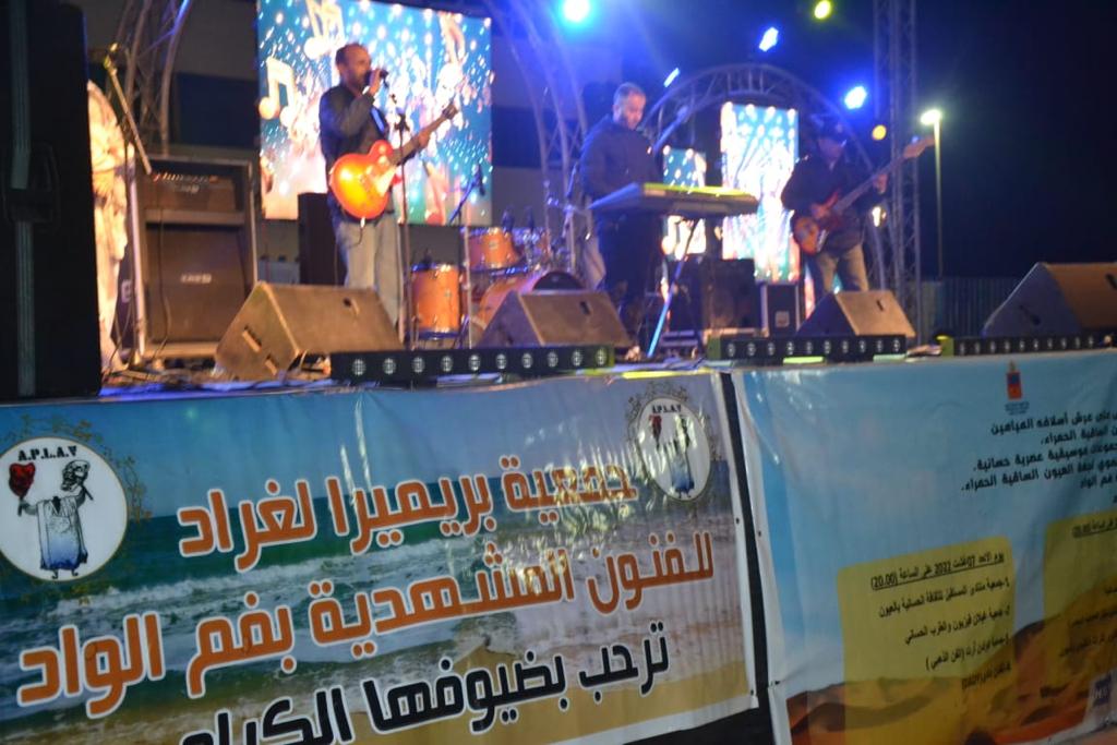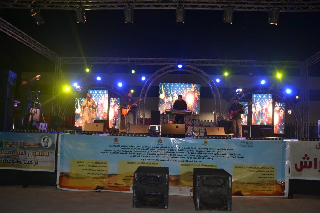 في غمرة الإحتفالات بالذكرى الوطنية العظيمة التي تؤرخ لإعتلاء أمير المؤمنين جلالة الملك محمد السادس نصره الله عرش أسلافه الميامين يوم 30يوليوز من كل سنة،هذه الذكرى المجيدة التي تسلط الضوء على أواصل المحبة القوية وتعلق الشعب المغربي بجلالة الملك محمد السادس،وبهذه المناسبة الكريمة تنظم المديرية الجهوية لقطاع الثقافة ومجلس جهة العيون، بإشراف وحضور السيد المدير الجهوي لحسن الشرفي سهرات فنية بجماعة فم الواد تحت شعار ” الموسيقى الحسانية تراث وهوية ” بشراكة مع ولاية العيون وجماعة فم الواد وذلك إبتداءا من 4 غشت 2022 الى غاية 7 منه.ويعتبر هذا النشاط تنزيلا لبرنامج تأهيل وتثمين الموسيقى الحسانية ضمن المكون الثقافي للنموذج التنموي لجهة العيون الساقية الحمراء. وقد عرف اليوم الأول من فعاليات البرنامج بعد الإستماع للنشيد الوطني،مشاركة 3 جمعيات محلية أبدعت بأغاني حسانية عصرية تفاعل معها الجمهور بكثير من الرضا والانسجام، ليستمر هذا البرنامج الحافل على مدى أربعة أيام متتالية سيعرف فيها المخيم الصيفي لفم الواد عدة فقرات ومشاركات متنوعة للعديد من الفنانين المعاصرين المتألقين ضمن المجال الفني.