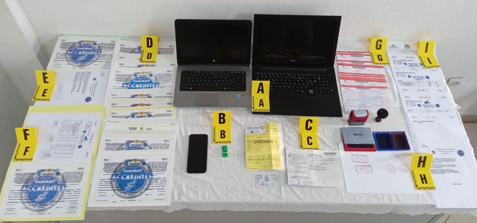وأضاف المصدر ذاته أن عمليات التفتيش المنجزة بمنازل الموقوفين أسفرت عن حجز مجموعة إضافية من الشواهد المدرسية والجامعية المزورة، فضلا عن كشوفات للنقط تحمل هويات الغير، وكذا شواهد مزورة وأخرى تخص أداء الضريبة السنوية على المركبات، كما تم حجز أختام مزيفة ومعدات معلوماتية تستعمل في ارتكاب هذا النشاط الإجرامي.