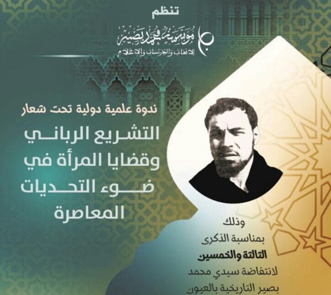 بمناسبة الذكرى الثالثة والخمسين لانتفاضة المناضل سيدي محمد بصير التاريخية بالعيون، تنظم مؤسسة محمد بصير للأبحاث والدراسات والإعلام، ندوة علمية دولية 24 و 25 يوليوز الجاري، بقاعة مقر الزاوية البصيرية ببني اعياط، وبعمالة إقليم أزيلال تحت شعار ” التشريع الرباني وقضايا المرأة في ضوء التحديات المعاصرة “،وذلك بحضور وفود من دول السينغال، مصر، ليبيا، تونس، فلسطين، العراق، لبنان، النيجر، باكستان، بريطانيا، إيطاليا، سوريا، جنوب إفريقيا، بلجيكا، فرنسا، أمريكا، الدنمارك، مالي و تركيا.