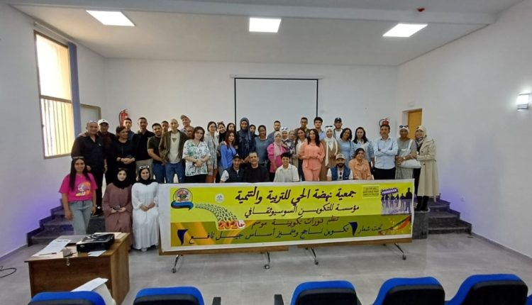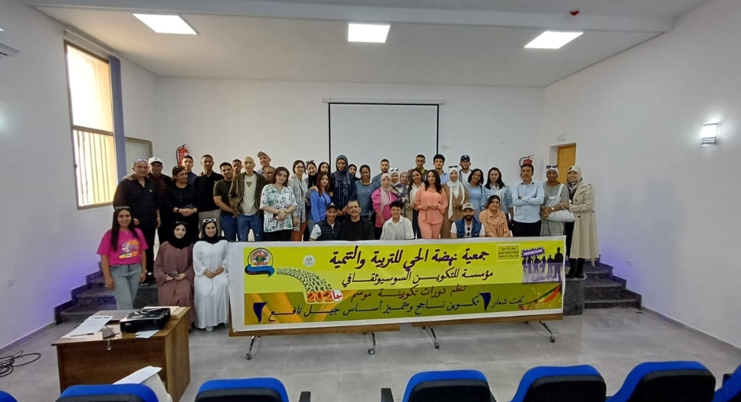 وأكد كريم الزويني رئيس جمعية نهضة الحي للتربية و التنمية أن الدورة التكوينية المتخصصة في التكوين السيوسوثقافي، تهدف إلى تطوير قدرات الاطر التربوية وتمكينهم من عدة مهارات لتنشيط السوسيو ثقافي و تقنيات التواصل مع الاطفال ، و تمكينهم من المعارف القانونية المؤطرة للمخيم و التركيز على حماية و سلامة الطفل .