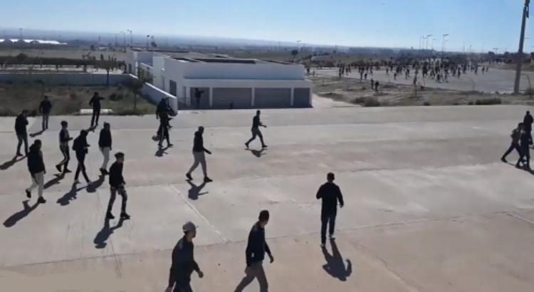 وعرف جانب مركب “أدرار” مواجهات قوية وتراشق بالحجارة بين بعض من جماهير الحسنية ورجال الأمن وراء “مدرجات تارودانت” بعد تدخلهم لإبعاد الجماهير السوسية من التوجه لمدرجات الملعب المخصص للجماهير “العسكرية” التي تنقلت بأعداد محترمة إلى مدينة أكادير، لتشجيع “الزعيم”.
