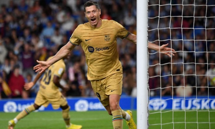 ليفاندوفسكي يحرز ثنائية في فوز ساحق لبرشلونة على سوسيداد