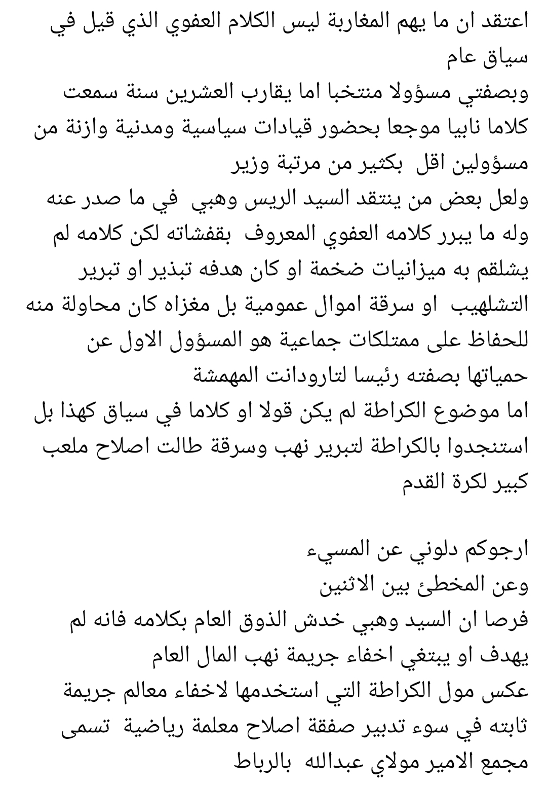 اعتقد ان ما يهم المغاربة ليس الكلام العفوي الذي قيل في سياق عام