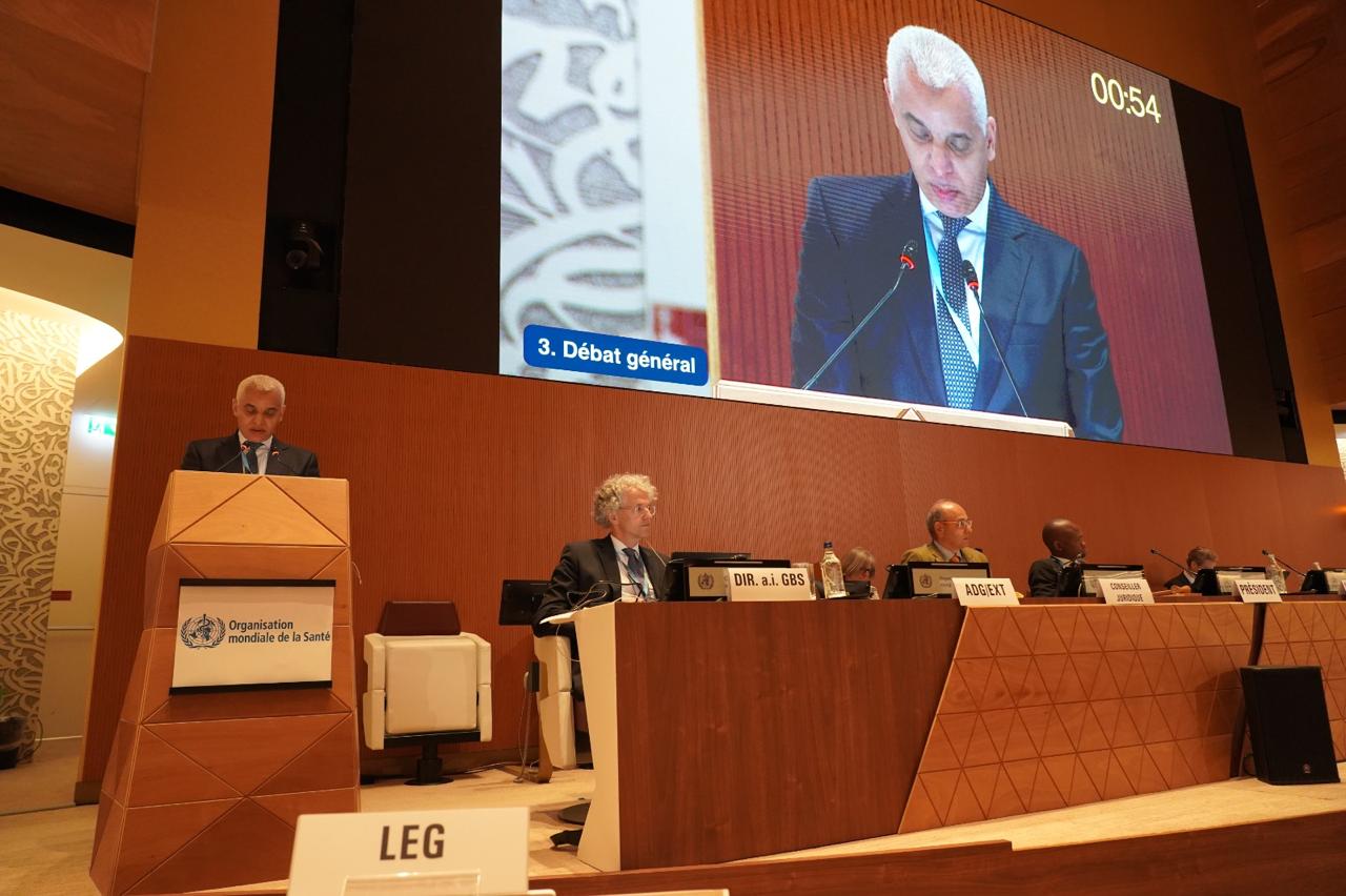 هذا، وأعرب الوزير عن امتنانه العميق لقيادة منظمة الصحة العالمية ولجميع أطرها على ما تم تحقيقه من إنجازات مهمة خلال السنة الماضية لمعالجة العدد المتزايد من الأزمات الصحية والإنسانية التي يشهدها العالم، معربا عن تقديره الكبير للدور الريادي والفعال للمنظمة وجهودها الحثيثة من أجل تعزيز البنيات الصحية والتنسيق مع مختلف الشركاء.