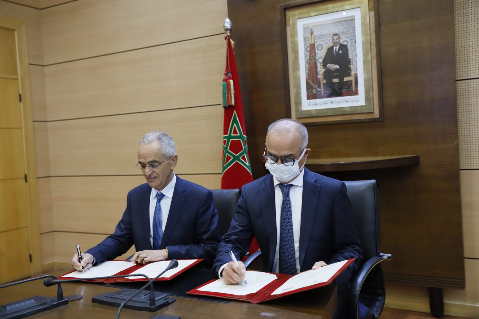 أشرف شكيب بنموسى، وزير التربية الوطنية والتعليم الأولي والرياضة اليوم، على مراسم حفل توقيع اتفاقيتي شراكة مع عز الدين المنتصر بالله، الرئيس المدير العام لشركة إنوي للاتصالات، وهنريك كاستيل، المدير العام » لأورونج « المغرب تهم دعم التعليم الرقمي داخل المنظومة التعليمية ببلادنا.