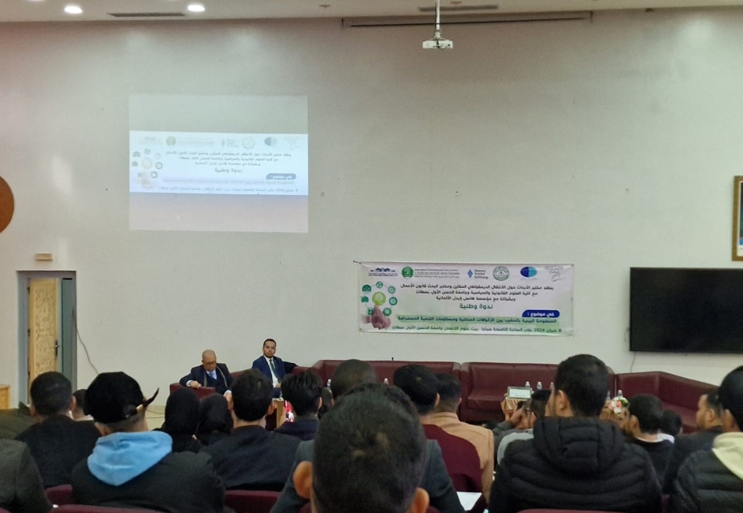 نظم مختبر الأبحاث حول “الانتقال الديمقراطي المقارن”، ومختبر البحث “قانون الأعمال” بتعاون مع كلية العلوم القانونية والسياسية، وجامعة الحسن الأول بسطات، وبشراكة مع مؤسسة “هانس زايدل” الألمانية ندوة وطنية حول موضوع “المنظومة البيئية بالمغرب بين الإكراهات المناخية ومستلزمات التنمية المستدامة” وذلك بغية إخضاع التجربة المغربية بهذا الصدد إلى تقييم موضوعي يصبو إلى استجلاء مواطن قوتها وضعفها وفرصها وأهم مخرجاتها من خلال التطرق للمحاور التالية: