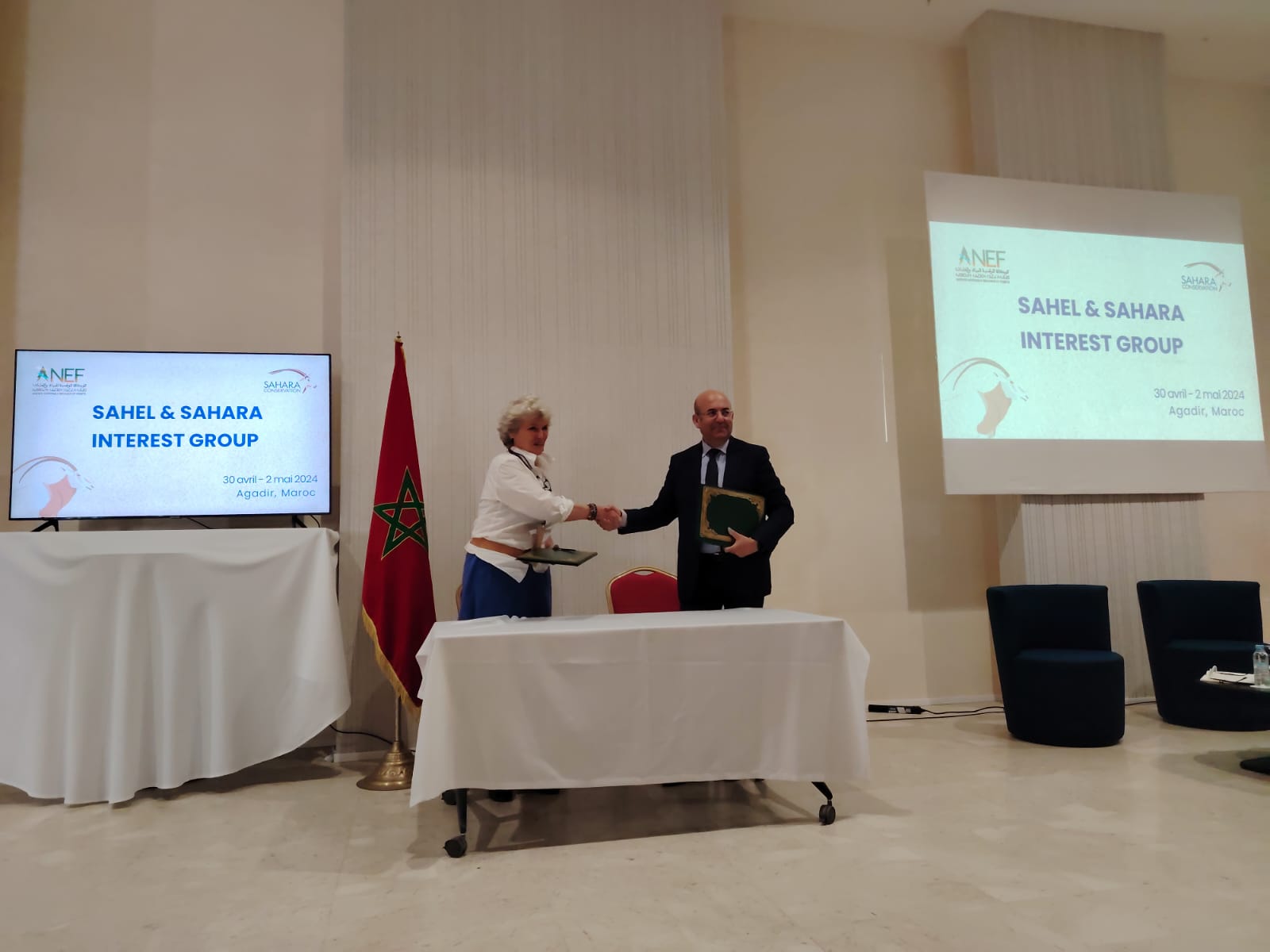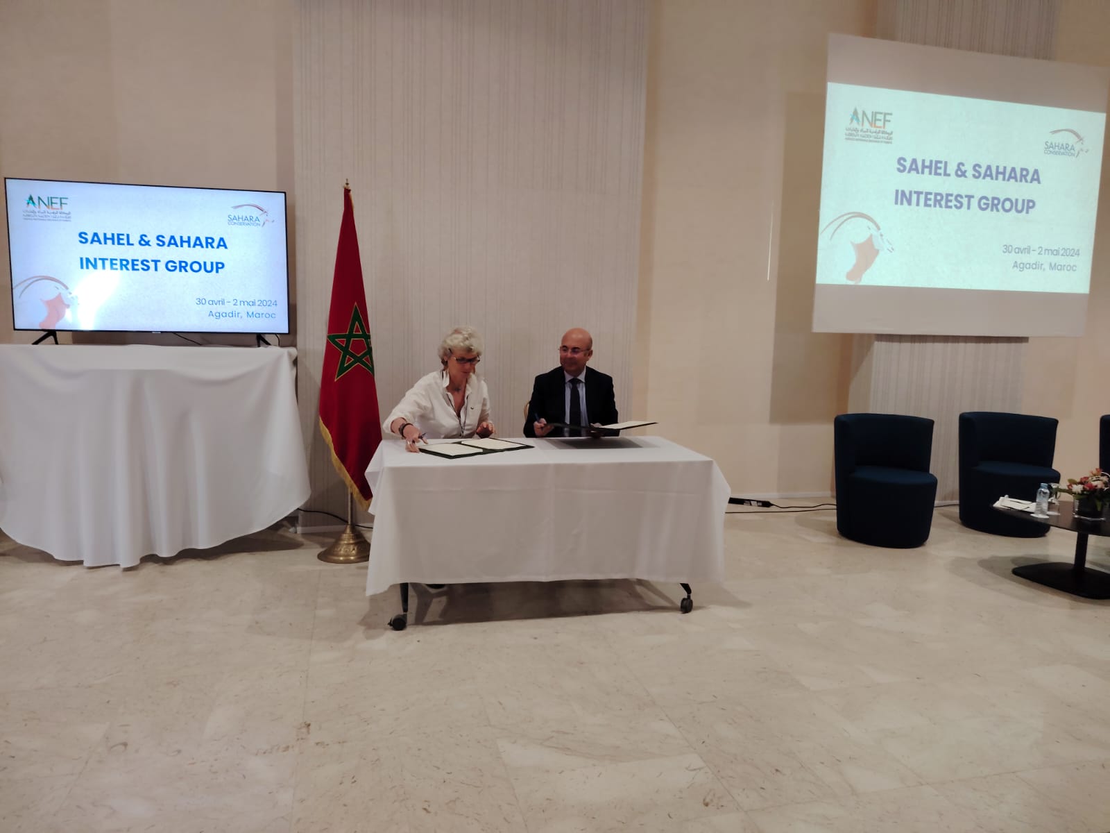 هذا وقد تخلل هذا اللقاء توقيع المغرب في شخص المدير العام للوكالة الوطنية للمياه والغابات السيد عبد الرحيم هومي اتفاقية تعاون تجمع بين كل من الوكالة الوطنية للمياه والغابات،ومنظمة الحفاظ على الأصناف البرية والطبيعة بمنطقة الصحراء والساحل Sahara Conservation ، وهي منظمة دولية مكرسة للحفاظ على النظم الإيكولوجية الطبيعية والمناظر الطبيعية الفريدة للصحراء والساحل والحفاظ عليها.