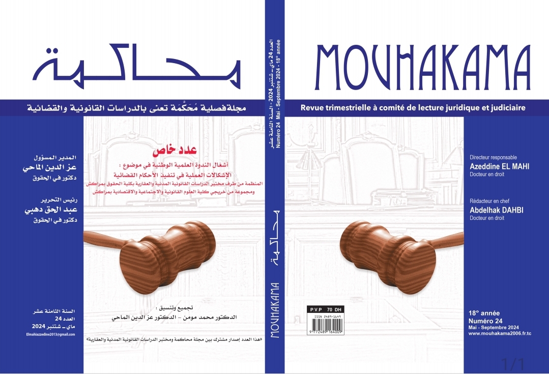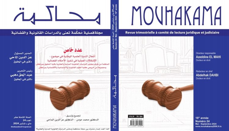 هذا العدد الخاص يتضمن أشغال الندوة الوطنية العلمية حول موضوع: الإشكالات العملية في تنفيذ الأحكام القضائية، وهي الندوة المنظمة من طرف بعض قدماء خريجي كلية الحقوق بمراكش ( قضاة، محامون، أطر إدارية…)، ومختبر الدراسات القانونية المدنية والعقارية بنفس الكلية، وقد جاء العدد حافلا بمواضيع مهمة تجمع بين الجانب الأكاديمي والعملي من قبيل: الحجز كآلية لتنفيذ الأحكام الجنائية في ضوء قانون المسطرة المدنية ومدونة تحصيل الديون العمومية،ورصد لبعض إشكالات التنفيذ الجبري للاحكام القضائية عن طريق البيع بالمزاد العلني، وتأملات حول بعض الاشكالات العملية المرتبطة بتنفيذ المقررات القضائية، والغرامة الإجبارية في تنفيذ الأحكام القضائية المتعلقة بحوادث الشغل،وتنفيذ الأحكام القضائية في القضايا التجارية، وخصوصية التنفيذ الجبري في المادة الاجتماعية، ومسطرة الصعوبة في التنفيذ بين النص التشريعي والعمل القضائي، وإشكالات تنفيذ الأحكام القضائية في قضايا الاعتداء المادي، وصعوبة تنفيذ الأحكام القضائية في المادة العقارية (إرجاع الحالة إلى ماكانت عليه) وإشكالات تنفيذ الأحكام الصادرة لفائدة الإدارة( نقل الملكية في حالة الاعتداء المادي نموذجا ) والغرامة التهديدية كآلية لتنفيذ الأحكام القضائية في مواجهة الإدارة.