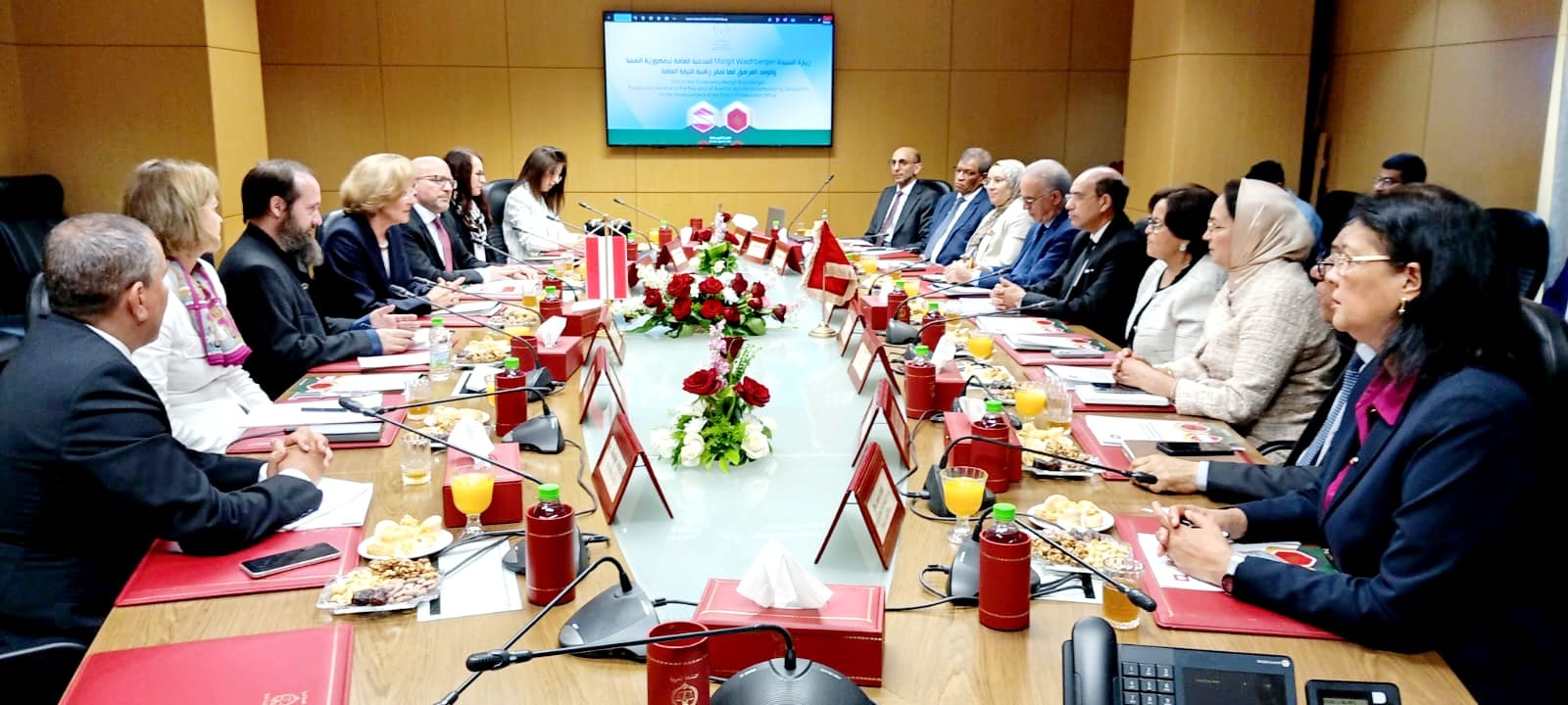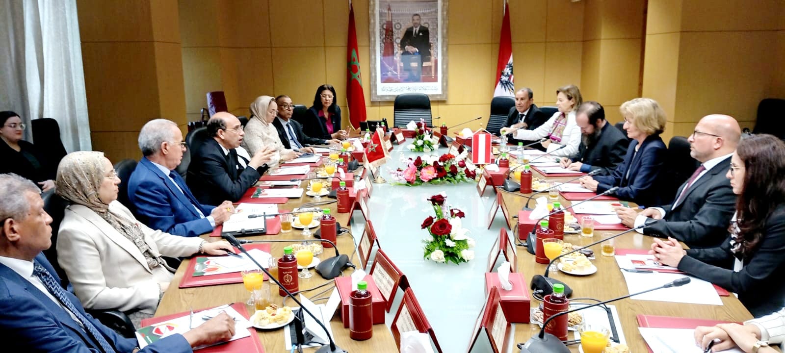 أجرى الوكيل العام للملك لدى محكمة النقض، رئيس النيابة العامــــة، هشام البلاوي، صباح اليوم الإثنين 27 أبريل 2026، بمقر رئاسة النيابة العامة بالرباط، مباحثات مع الوكيلة العامة بجمهورية النمسا، “مارغريت فاخبيرغر”، التي تقوم بزيارة عمل لبلادنا رفقة وفد رفيع المستوى، في إطار تعزيز علاقات التعاون بين مؤسستي النيابة العامة بكل من المملكة المغربية وجمهورية النمسا، والتي تمتد من تاريخ 26 إلى 28 أبريل 2026.