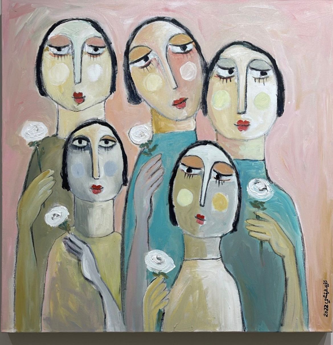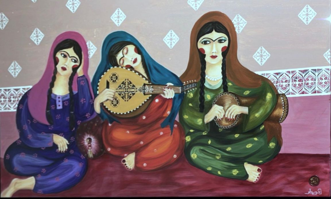 لوحات تحكي قصص واحلام ومشاعر عدة، تارة تأخذك الى الحدائق المزدهرة بالورود والعصافير، لتذكر بعلاقة المرأة بفصل الربيع والخصب والنماء، ولوحات أخرى تسرد قصص تاريخية عن قوة وصبر ووجود المرأة في جل الاحداث الاجتماعية، ودورهن الأساسي في البناء.