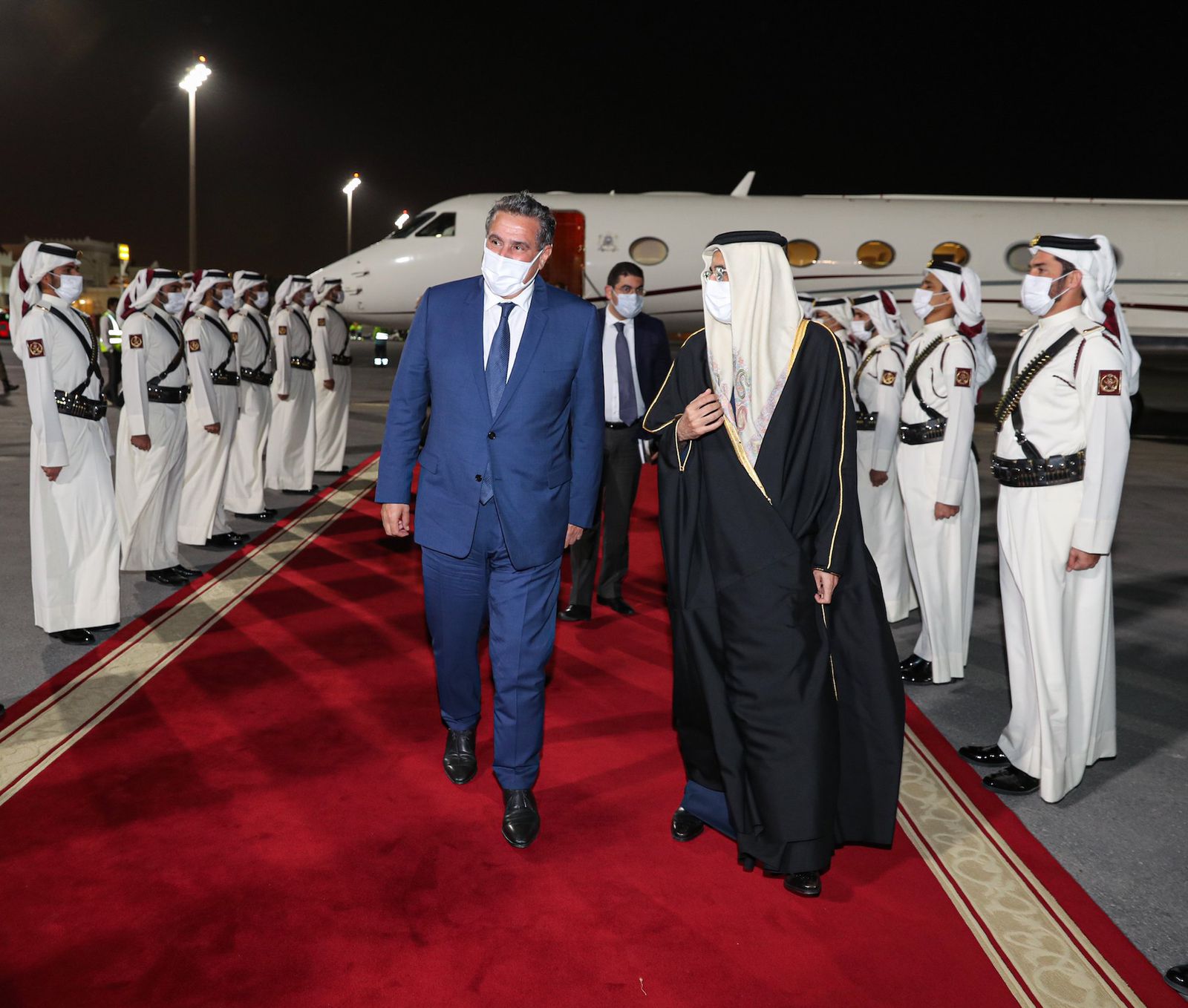 أما الوفد المغربي ، فيضم وزير الشؤون الخارجية والتعاون الإفريقي والمغاربة المقيمين بالخارج ناصر بوريطة ، ووزيرة السياحة والصناعة التقليدية والاقتصاد الاجتماعي والتضامني فاطمة الزهراء عمور، ووزير الشباب والثقافة والتواصل محمد مهدي بنسعيد ، ووزيرة الاقتصاد والمالية نادية فتاح علوي ، ووزير الصناعة والتجارة رياض مزور ، وزيرة الانتقال الطاقي والتنمية المستدامة نادية بنعلي ، إلى جانب سفير المملكة لدى الدوحة محمد ستري .