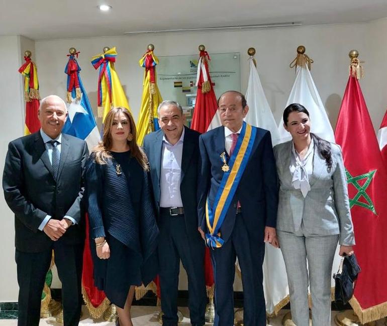 تجدر الاشارة الى أن هذا التوشيح جرى بمناسبة مشاركة وفد البرلمان المغربي، في أشغال الدورة العادية للبرلمان الأنديني، المنعقدة يومي 26 و 27 يوليوز الجاري بالعاصمة بوغوتا، حيث يضم الوفد النائبة فاتن الغالي والنائب محمد بنجلون التويمي عن مجلس النواب، والمستشار عبد القادر سلامة عن مجلس المستشارين، مرفوقين برئيس قسم العلاقات الخارجية بمجلس المستشارين، حسن أزرقان، ورئيسة مصلحة بالعلاقات الخارجية لمجلس النواب، قطيفة القرقري.