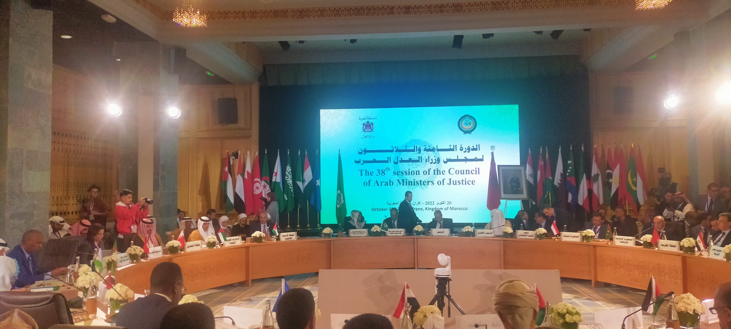 قال عبد اللطيف وهبي وزير العدل بالمملكة المغربية بمناسبة افتتاح أشغال الدورة (38) لمجلس وزراء العدل العرب اليوم 20 أكتوبر 2022 بمدينة إفران المملكة المغربية – قال وهبي ” إن دورات مجلس وزراء العدل شكلت على الدوام فرصة مهمة تلتئم فيها صفوة من رجال القانون ومهندسي العدالة ببلادنا لتدارس ومناقشة مختلف القضايا ذات الاهتمام المشترك وسبل تطوير وتعزيز آليات التعاون العربي المشترك لمواجهة التحديات وكسب الرهانات خاصة في مجال مكافحة الجريمة المنظمة والإرهاب وبعض الجرائم المستجدة.”