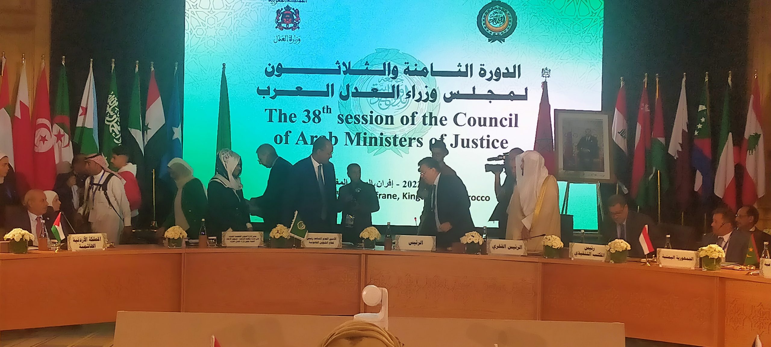 وفي هذا الإطار، وانطلاقا من الإصلاحات التي شهدتها منظومة العدالة بالمملكة المغربية والأوراش المفتوحة، تحت القيادة الرشيدة لجلالة الملك نصره الله وأيده، بناء على الحوار الوطني العميق والشامل لإصلاح منظومة العدالة سواء فيما يخص مجال توطيد معالم استقلال السلطة القضائية أو ما يرتبط بتطوير المنظومة القانونية وتحقيق النجاعة والفعالية في إدارة مرفق العدالة عبر التحول الرقمي وتبسيط المساطر والإجراءات وغيرها من الإصلاحات على المستوى القانوني والحقوقي، فإن وزارة العدل المغربية تمد يدها للتنسيق والتعاون وتبادل التجارب والممارسات الفضلى في كل ما اشتغلت عليه من أوراش تشريعية كانت أم تنظيمية.”