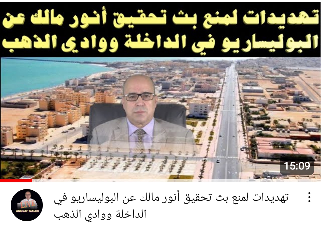 ورغم ان الإعلامي  انور مالك، كان مرحب به في سنوات ماضية من قبل عصابة البوليساريو في عهد عبد العزيز المراكشي، لما قال انه هناك بعض ” الانفصاليين” يعيشون في الصحراء المغربية، لكن اليوم يظهر ان هناك من يريد عرقلة نشر تحقيقات توصل اليها الإعلامي أنور مالك، في مدينة الداخلة، وهو تحقيق قد يكون صادم لميلشيات البوليساريو وداعميها من حكم النظام العسكري الجزائري.