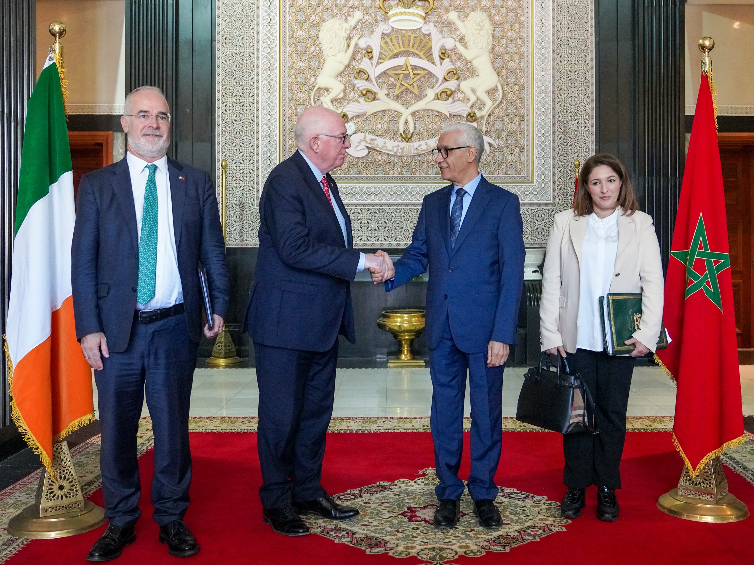 وتمحورت المباحثات التي أجراها الجانبان، بحضور كل من السيدة لطيفة أعبوث رئيسة مجموعة الصداقة البرلمانية المغرب – أيرلندا، والسيد James McIntyre سفير جمهورية أيرلندا المعتمد لدى المملكة المغربية، حول الأوراش الكبرى التي انخرطت فيها المملكة المغربية تحت القيادة الرشيدة لجلالة الملك محمد السادس نصره الله، وحول آفاق تعزيز علاقات التعاون بين المؤسستين التشريعيتين بالبلدين.