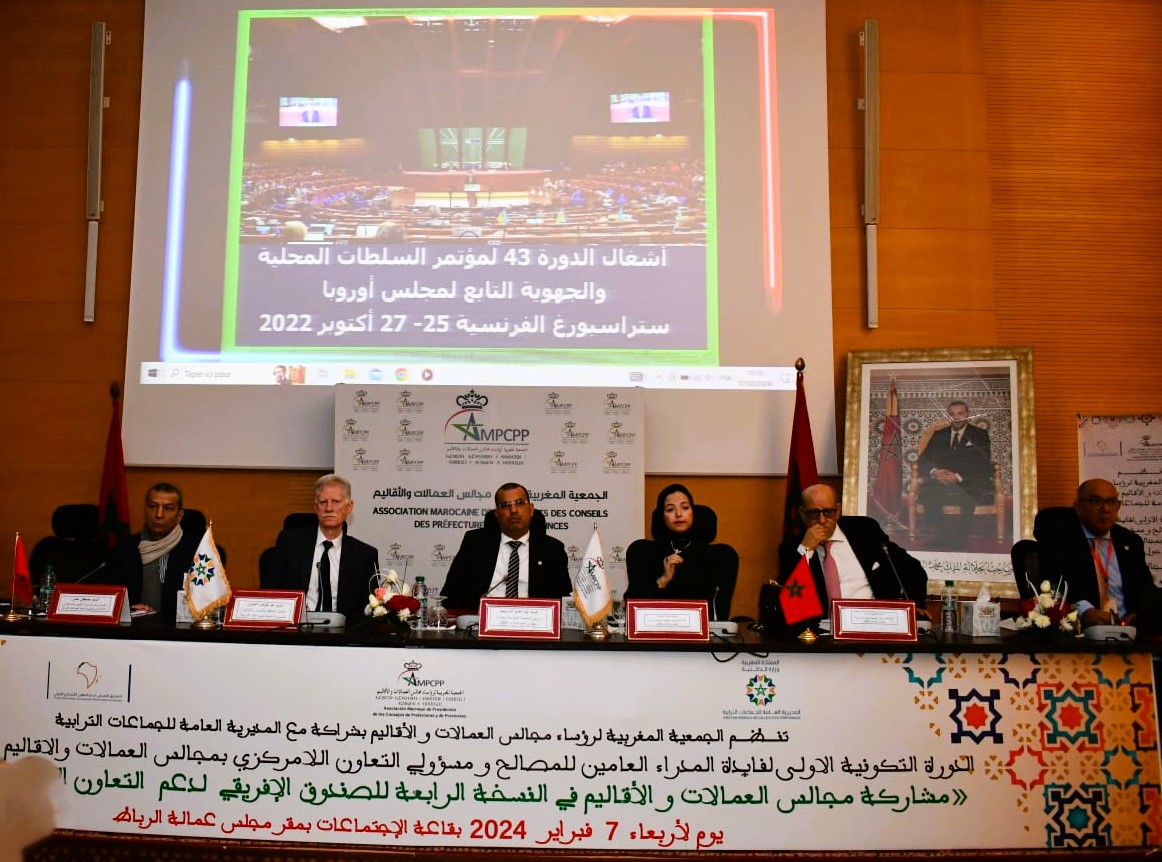 نظمت الجمعية المغربية لرؤساء مجالس العمالات والأقاليم، بشراكة ودعم من المديرية العامة للجماعات الترابية، دورة تكوينية عرفت مشاركة ثمانين (80) إطارا يمثلون المدراء العامون للمصالح ومدراء شؤون الرئاسة والمجلس والأطر المكلفة بالتعاون بمجالس العمالات والأقاليم من مختلف مناطق المغرب وذلك يوم الأربعاء 07 فبراير 2024 بقاعة الإجتماعات بمقر مجلس عمالة الرباط خصصت لموضوع التعاون اللامركزي الدولي وتحديدا ملف المشاركة في النسخة الرابعة من طلب انتقاء المشاريع في إطار “الصندوق الإفريقي لدعم التعاون الدولي اللامركزي للجماعات الترابية ” الذي أطلقته وزارة الداخلية تماشيا مع السياسة الحكيمة لمولانا صاحب الجلالة الملك محمد السادس نصره التي يوليها للقارة الإفريقية ودعم التعاون جنوب/جنوب، وفي إطار الدبلوماسية الموازية التي تقوم بها الجماعات الترابية للدفاع عن القضايا الوطنية والتسويق للنموذج المغربي المتميز في مجال حكامة الشأن الترابي واللامركزية