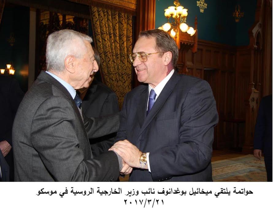 – عقد نايف حواتمة الأمين العام للجبهة الديمقراطية لتحرير فلسطين مباحثات موسعة ومطولة مع ميخائيل بوغدانوف نائب وزير الخارجية الروسية وممثل الرئيس الروسي بوتين للشرق الأوسط وأفريقيا، ومندوب الرئيس بوتين إلى القمة العربية المقرر عقدها في الأردن في 29 آذار / مارس 2017 .