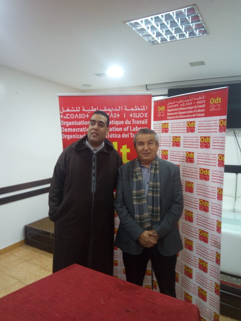 عقد سعيد الشرادي الكاتب الإقليمي للمنظمة الديمقراطية للثقافة بالعيون لقاء مع علي لطفي الكاتب الوطني للمنظمة الديمقراطية للشغل بحضور حسن الأكحل الكاتب الوطني للمنظمة الديمقراطية للثقافة خصص لطرح مجموعة من القضايا التي تهم المنتسبين للنقابة على مستوى الأقاليم الجنوبية وعموم المارسين خاصة ما يرتبط بوضعية الفنان الاجتماعية والاقتصادية والارتقاء بها نحو الأفضل، والدفاع عن مصالح هذه الفئة والعمل على نأطيرها وتكوينها.