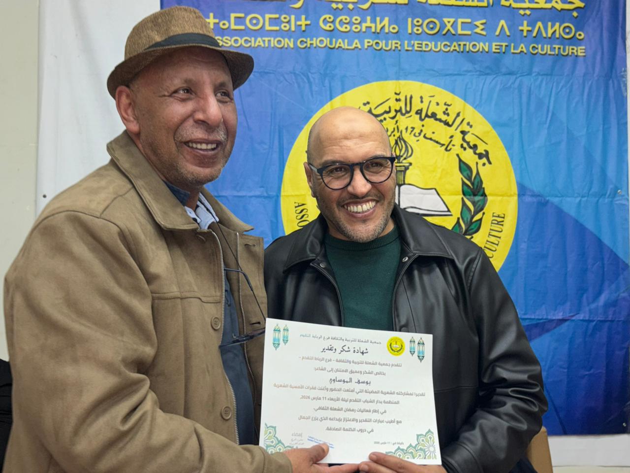في ليلة رمضانية دافئة، حيث تمتزج روحانية الشهر الفضيل بنبض الكلمة وإيقاع الشعر احتضنت دار الشباب التقدم بمدينة الرباط مساء الأربعاء 11 مارس 2026 أمسية شعرية متميزة نظمها فرع الرباط التقدم لجمعية الشعلة للتربية والثقافة، في إطار فعاليات “رمضان الشعلة الثقافي”، ذلك المشروع الثقافي الذي اختار أن يفتح فضاءات اللقاء بين الفكر والإبداع، وأن يمنح للشباب فرصة الإصغاء إلى صوت الجمال وهو يتجسد في اللغة والصورة والإيقاع.