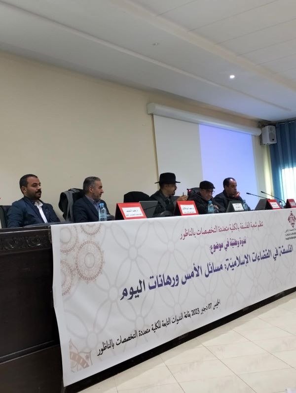 نظمت شعبة الفلسفة، والكلية متعددة التخصصات بالناظور، ندوة وطنية في موضوع ” الفلسفة في الفضاءات الإسلامية: مسائل الأمس ورهانات اليوم “، وذلك يوم الخميس 7 دجنبر 2023، بقاعة الندوات التابعة للكلية متعددة التخصصات بالناظور.