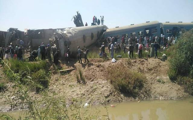 50 مصابا حتى الآن في حادث تصادم قطارين بصعيد مصر
