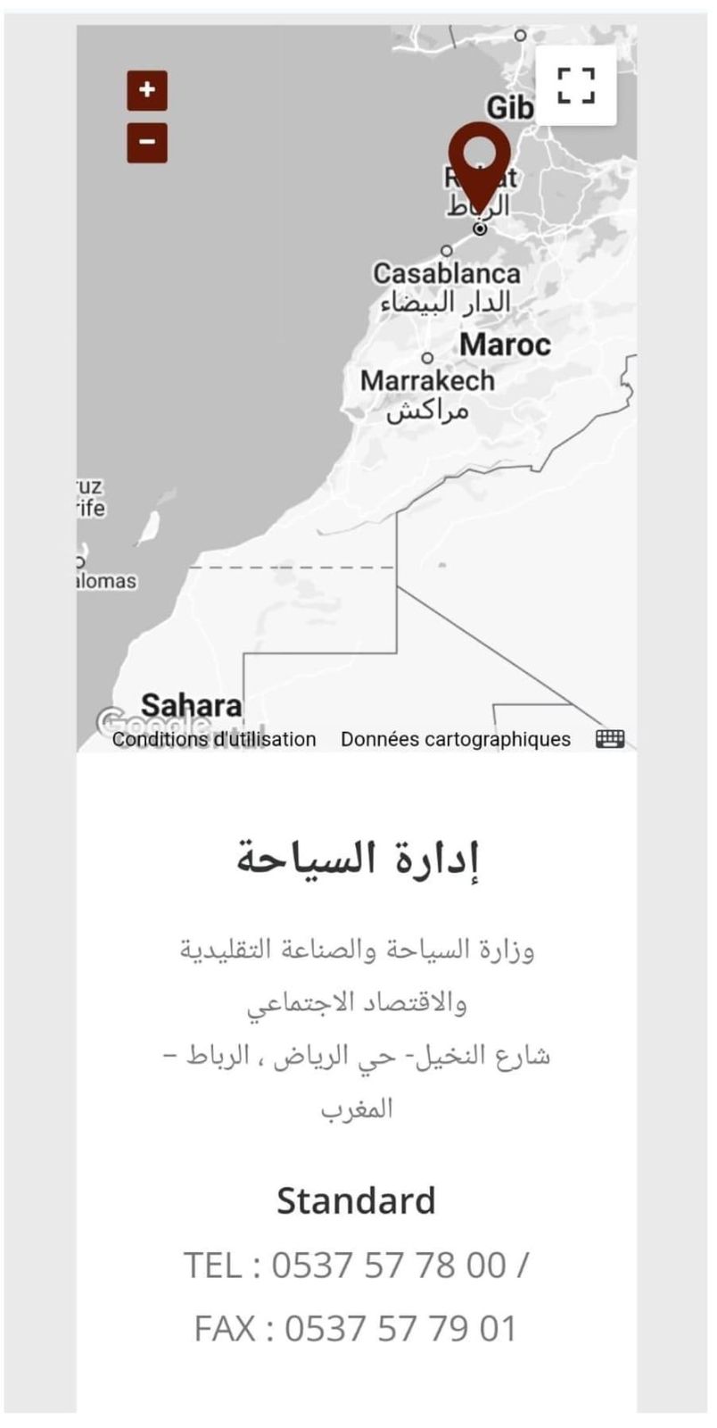نشر الموقع الرسمي لوزارة السياحة والصناعة التقليدية والاقتصاد الاجتماعي والتضامني خريطة المملكة المغربية مبتورة من صحراءها في القسم المتعلق بالتواصل مع الوزارة وهو ما وصفه رواد مواقع التواصل الاجتماعي بالفضيحة.