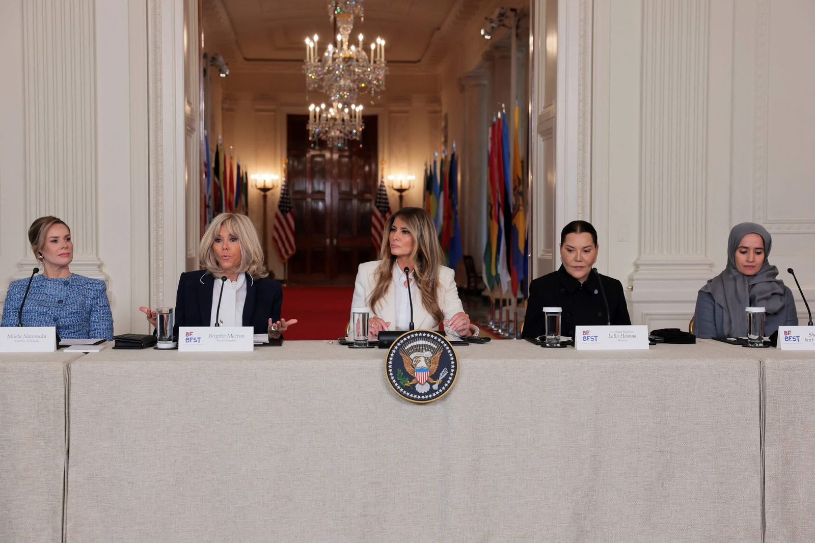 وتميز هذا اللقاء، أيضا، بالكلمات التي ألقاها، على الخصوص، كل من السيدة بريجيت ماكرون (فرنسا)، وصاحبة السمو الشيخة اليازية بنت سيف آل نهيان (الإمارات العربية المتحدة)، والسيدة مارتا ناوروكا (بولندا)، والسيدة ماريسيل كوهين دي مولينو (بنما)، والدكتورة فاطمة مادا (سيراليون)، وفخامة غيرترود موثاريكا (مالاوي).