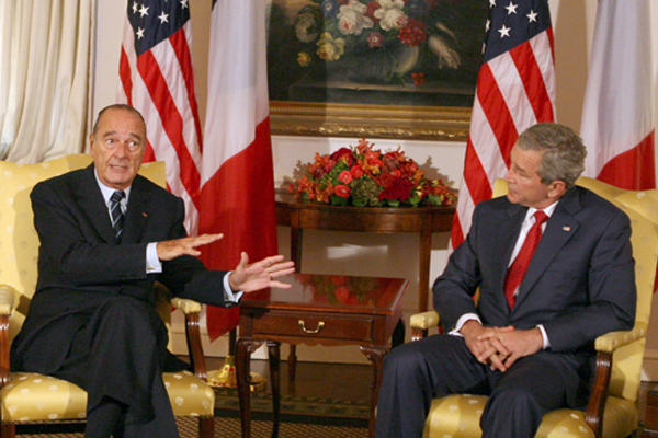 وفي 18 آذار/مارس 2003، أعلن الرئيس شيراك أن “العراق لا يمثل اليوم تهديداً وشيكا يبرر اللجوء إلى حرب فورية. فرنسا تدعو الجميع لتحمل المسؤولية في احترام الشرعية الدولية…إن الخروج عن شرعية الأمم المتحدة، وإعطاء الأولوية للقوة على القانون، يعني تحمل مسؤولية كبيرة”.