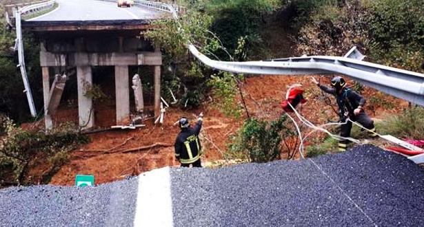 وفي ليغوري المجاورة انهار جسر على طريق سريع بالقرب من سافونا يربط تورينو وفرنسا جراء انهيار ارضي، ما خلف حفرة بطول 30 مترا في الطريق.