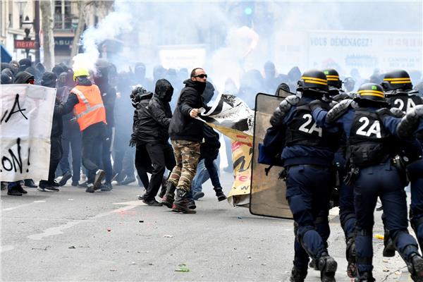 وعرضت محطة التلفزيون الفرنسية (بي.إف.إم) لقطات لشرطة مكافحة الشغب وهي تشتبك مع نحو 30 محتجًا في جار دو ليون إحدى أكثر محطات العاصمة الفرنسية ازدحامًا والتي غالبا ما تستخدم للسفر إلى منتجعات التزلج على الجليد في جبال الألب.