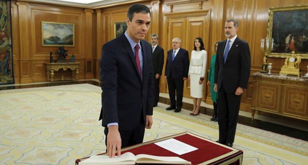 وكان بيدرو سانشيز قد أدى اليمين الدستورية كرئيس للحكومة أمام ملك إسبانيا فيليبي السادس، أمس الأربعاء، غداة نيله ثقة مجلس النواب.