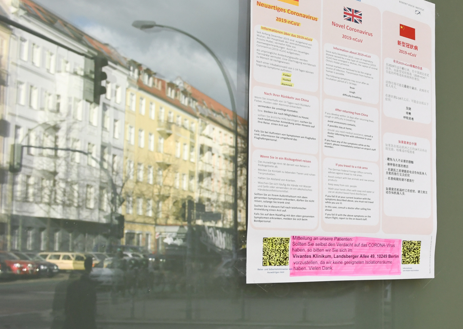 وأعلن رئيس الإدارة المحلية في هاينسبرغ، ستيفان بوش، تعليق عمل المدارس ورياض الأطفال في المنطقة ودعا المواطنين الذين ظهرت عليهم أعراض المرض إلى البقاء في منازلهم والتواصل مع أطبائهم هاتفيا.
