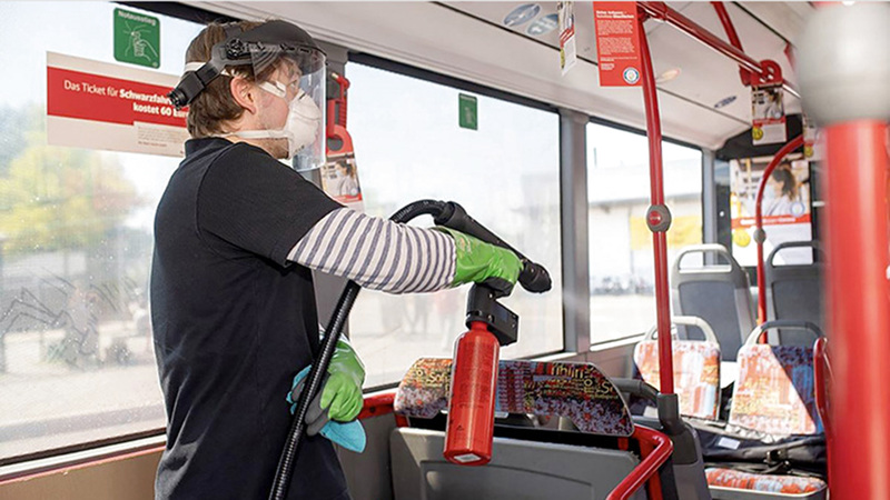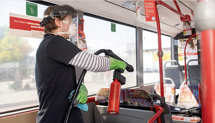 وذكرت “دويتشه بان” بأنه تم رش جميع الأسطح التي يمكن لمسها من قبل الركاب والعاملين في الحافلة مثل عجلة القيادة والمقاعد وأزرار التوقف، بمادة مضادة للفيروسات والبكتيريا.