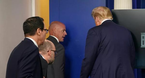 قطع الرئيس الأميركي، دونالد ترامب، الاثنين، المؤتمر الصحفي اليومي الخاص بتطورات أزمة كورونا، بشكل مفاجئ، بطلب من الأجهزة الأمنية.