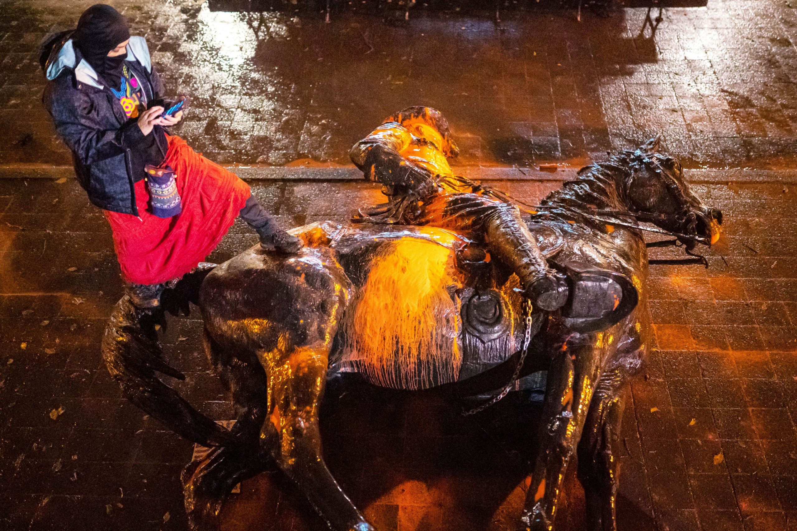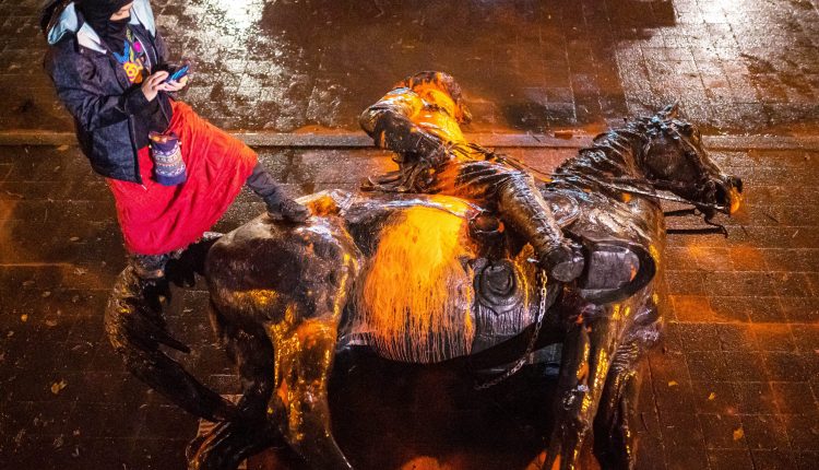 وليل الأحد بدأ المتظاهرون، الذين ارتدوا بغالبيتهم ملابس سوداء واعتمروا خوذات وكانوا ملثّمين، بإسقاط تمثال لروزفلت (1858-1919) مستخدمين في ذلك سيارة، قبل أن يسقطوا تمثال لينكولن (1809-1865).