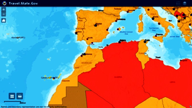 الموقع الرسمي لحكومة الولايات المتحدة الأمريكية خصت المواطنين الأمريكيين الراغبين في السفر للخارج بقائمة الدول التي يمكن زيارتها، و في هذا الصدد قامت الادارة الامريكية الجديدة في موقعها الرسمي  بتحديث خريطة القارات الخمس حيث يظهر المغرب مع صحرائه التي تمتد حتى الحدود الشمالية لموريتانيا.