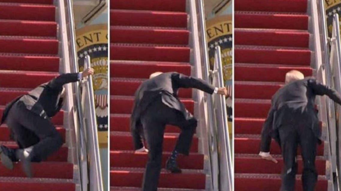 وكان بايدن يهم بالصعود إلى الطائرة الرئاسية “إير فورس وان”، عندما تعثر وسقط عدة مرات ثم قام بشكل عادي وواصل طريقه إلى باب المركبة الجوية.