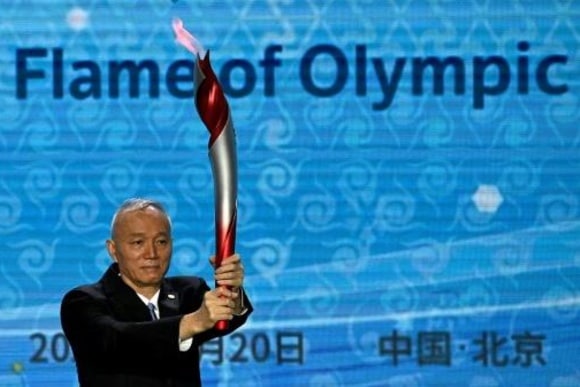 واستقبلت جوقة من الأطفال الشعلة قبل أن ينقلها إلى مرجل كاي تشي سكرتير الحزب الشيوعي الصيني في بكين.
